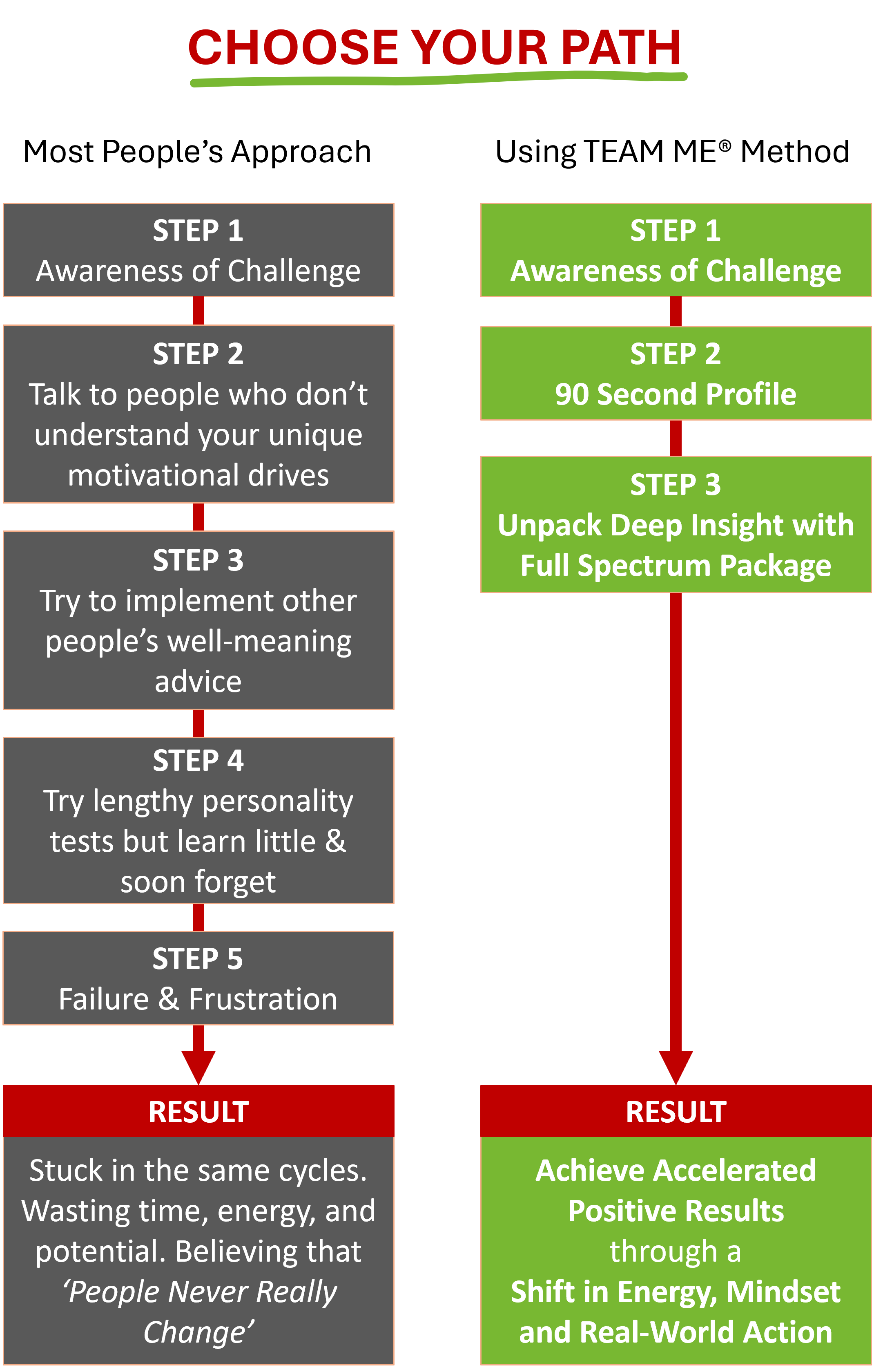 TEAM ME® is an incredible profiling tool that provides immediate and meaningful self-refection and motivates action.